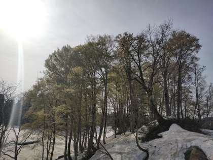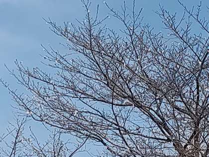 校舎裏の桜が咲き始めました。安吾の森も緑色に染まっています。校舎周りはまだまだ雪におおわれてはいますが、確実に春が訪れています。