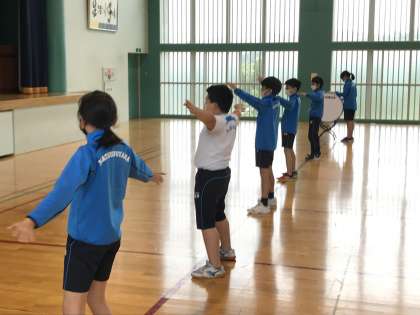 まつのやま学園スポーツ部が、6月14日、15日に長岡市営陸上競技場で行われる中越地区大会に出場します。今朝は5、6年生の子どもたちが、壮行会のための練習をしていました。雨模様の天気を振り払うかのような大きな声が体育館に響いています。その気持ちが選手にも届くはずです。本番の選手の活躍に期待しましょう。