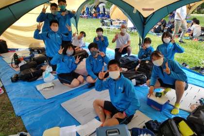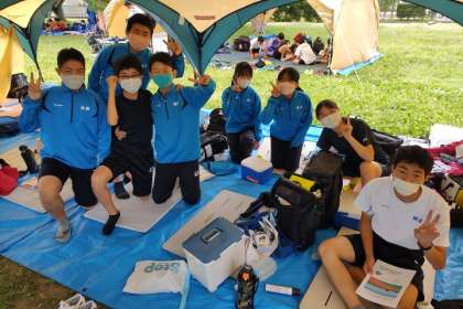 今日、明日は長岡市営陸上競技場で中越地区陸上競技大会が行われます。スポーツ部17名全員でベストを尽くします! 競技前のリラックスした様子です。みんな元気です。写っていない選手はアップ中です。