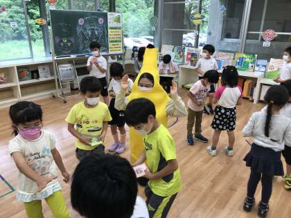 今日は1年生から6年生まで英語の学習がある日です。アリッサ先生からたくさん英単語の発音を習いました。1・2年生は色や果物、3・4年生は動物、5・6年生は外国の名前が今日のテーマです。どの学年もネイティブスピーカーの発音を聞いて練習できるのでぐんぐん発音がよくなっていきます。今日はたくさんのぬいぐるみも登場して授業を盛り上げました。これからも楽しみながら勉強しましょうね♪