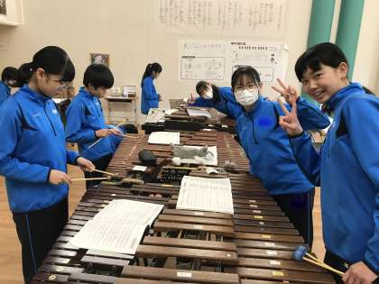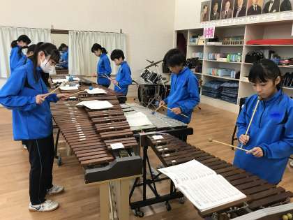 木琴の練習中の7年生。エーデルワイスに続いて演奏する曲は「星の世界」。木琴の軽快なリズムが音楽室に響きます。