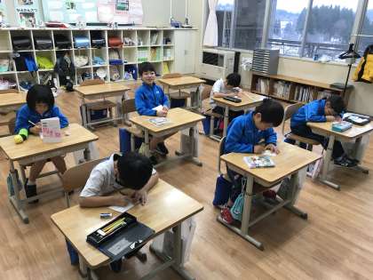 今朝は期ごとの集会が行われました。ホップ期は各学級に分かれてクリスマスツリーの飾り作り、ステップ期は体育館でいす取りゲーム、ジャンプ期は多目的室でなぜかだるまさんが転んだ。寒いから中学生は体を動かして遊びたいのでしょうか。