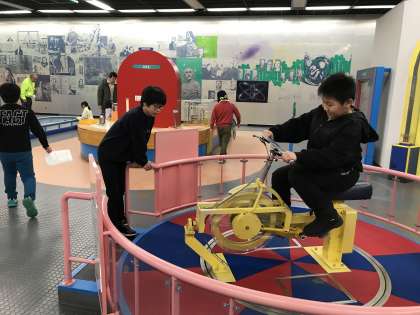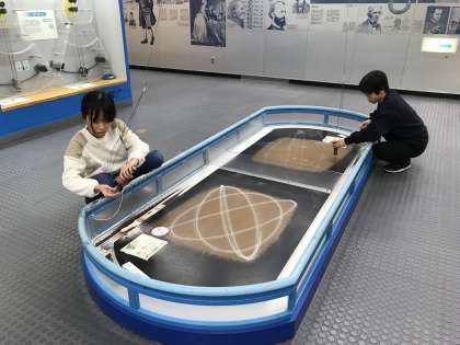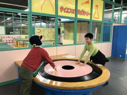 体験できるものが多いのが自然科学館の魅力です。でも、中にはどうなるのか分からないものも。うーん、うまく動かないな…。