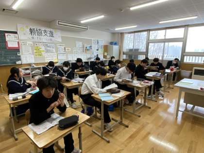 朝のいきいきアップです。外はかなり吹雪いていますが、学園のお子さんは元気一杯です。一方、9年生は最後の定期テストに向けて勉強しています。こちらも頑張って!