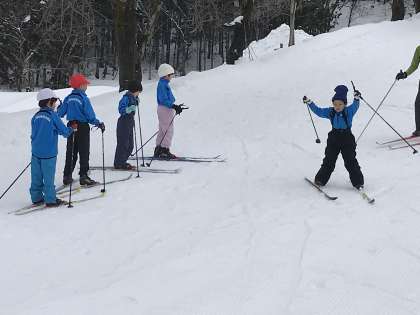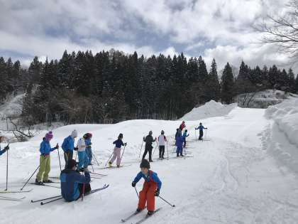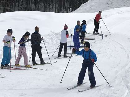 最後は坂を滑ってみましょう。アルペンとは違いますね。あー、転びそうです。