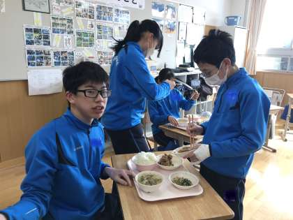 とおかまちメニュー第2段は双葉家さんとのコラボメニューです。今回は中華料理で統一して献立を提案していただきました。お味の程は?写真は8年生の様子です。ごはんが多いのですが、がんばって食べます。