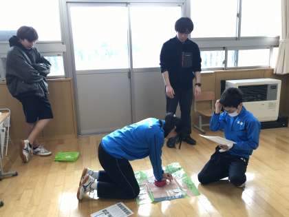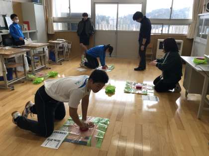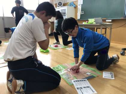 8年生の保健体育は心肺蘇生。AEDの使い方や心臓マッサージのやり方を勉強します。緊急事態に遭遇しても人命を救えるようにしっかり学んでください。