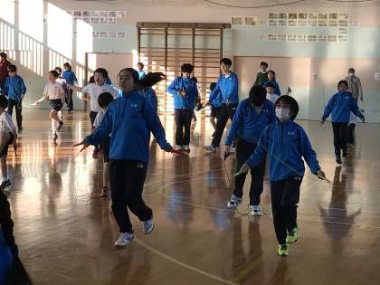 片足跳びに駆け足跳び、あや跳びに交差跳び、二重跳びにはやぶさ。どれか跳べますか?あー、難しい。