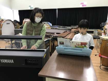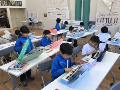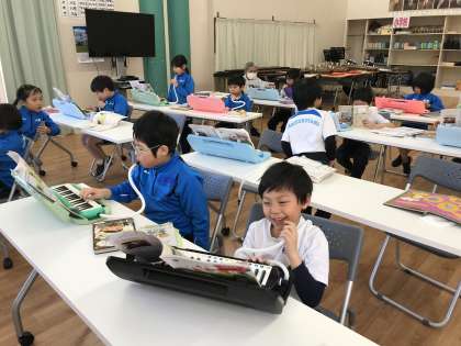 1・2年生の音楽は鍵盤ハーモニカのテスト。順番に別室に行って演奏します。僕の番はまだ。あードキドキする。