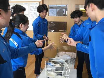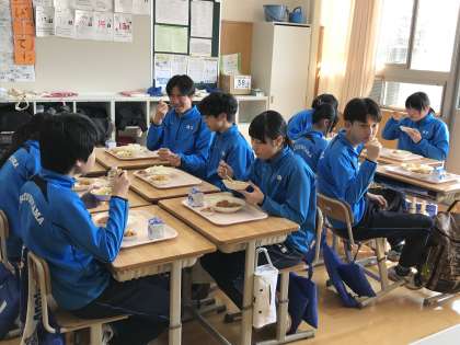 今日はバレンタインデー。給食センターからはバレンタイン献立の贈り物です。サラダにはハートが。愛情たっぷりの手作りマフィンも。写真は9年生の様子です。マフィンをかけた壮絶なジャンケン勝負が始まりました。勝つのは誰だ?