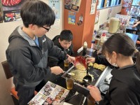 お昼ごはんは、浅草で「お好み焼き&もんじゃ焼き」です。作り方を教わって、...