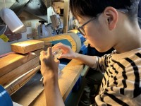 浅草での活動は、江戸切子の作成体験です。ガラスコップに模様を書き、表面を削ります...