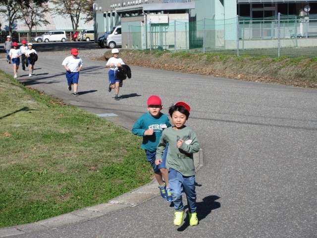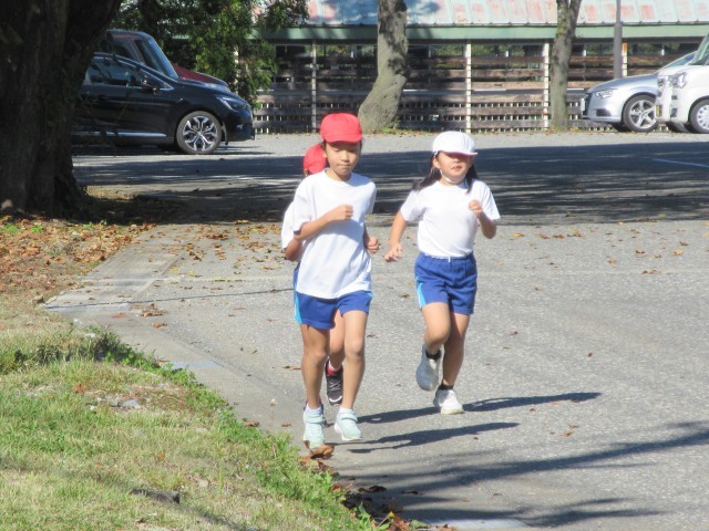 10月31日の校内持久走大会に向けて、昼休みにコースを開放しました。学校の敷地を出てピュアランドに向かう上り坂を走り切ると、そこで、多くのこどもが歩いてしまいます。疲れているし、もしかしたら大人の目がないし・・・。しかし、ピュアランドには「そこで歩かないんだよ!」と声をかける者がいます(笑)。こどもは、歩き出したところでこの声を聞き、すぐに再び走り出します。「ここをが頑張って走れば、下り坂が待っているよ!」自分の心に負けない頑張りを身に付けるいい機会です。