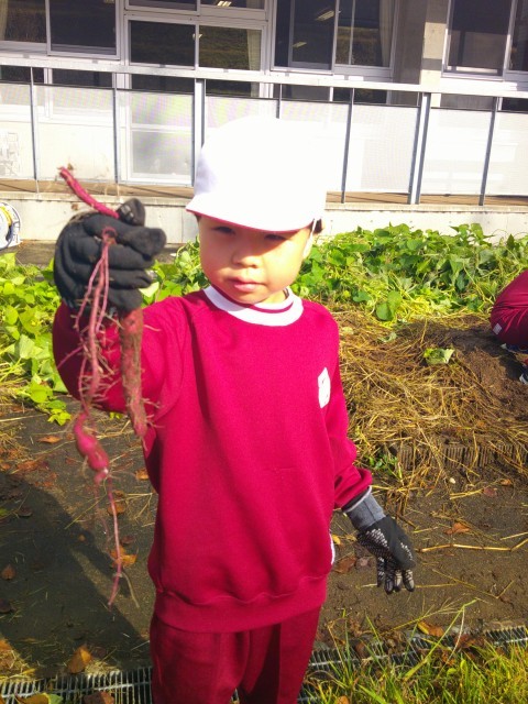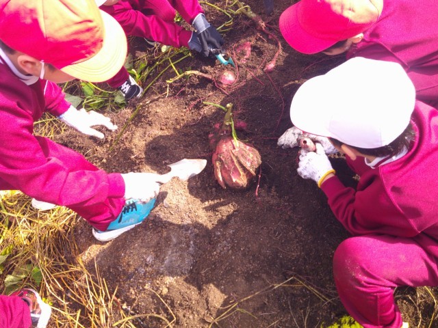 11月6日(木)、1年生がサツマイモ掘りをしました。え?これ確かにサツマイモですよね?と尋ねたくなるくらいbigな芋です。最後の一枚は愛嬌です(笑)