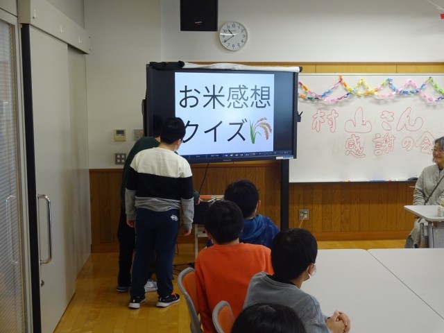 12月11日(木)、5年生が米作りの師匠を招待して、感謝祭を開催しました。おもてなしの食事は、もちろん収穫した米を使っています。私もご相伴にあずかりました!美味しかったです!