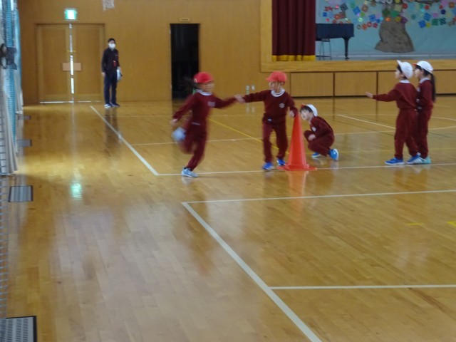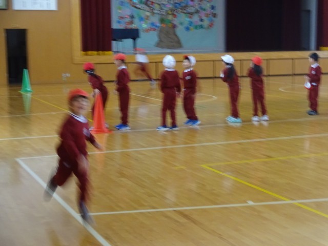 12月12日(金)、外は雪が舞っている中、体育館では、2年生の元気な声がしました。大好きなリレーを楽しんでいます。応援する声にも力が入っていました。