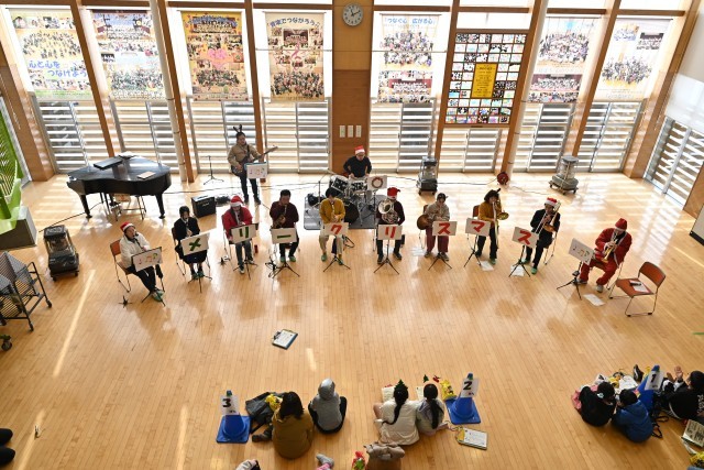 12月13日(土)、毎年恒例の、十日町小学校特別支援学級、ふれあいの丘支援学校、十日町中学校特別支援学級等のこどもたちと保護者、職員が集まってクリスマス会を開きました。