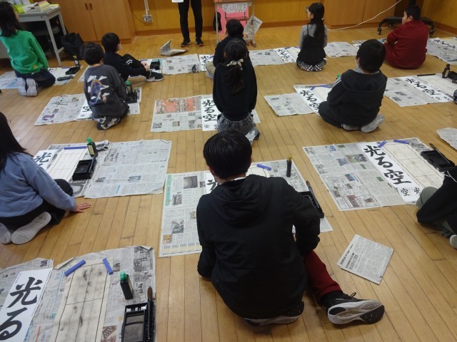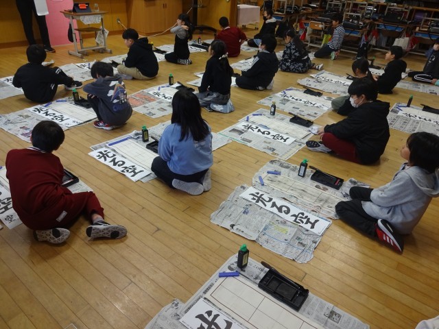 12月18日(木)、4年生が書初めをしていました。「ねえ、書初めの用紙の大きさって、県によって違うって知ってた?」担任が発した言葉に、こどもも私も絶句!「え?そうなの?」「なんで違うの?」その答えはわからずじまいでしたが、後日インターネットで調べてみると、確かに違うらしいことが分かりました。詳細を知りたい方は、「書き初め用紙のサイズ」で検索!