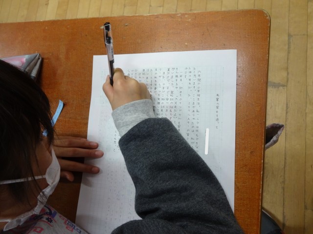 6年生が今取り組んでいるのが、卒業文集の制作です。一字一字に気持ちを込めて、丁寧に清書していました。その内容もさることながら、こどもにとっては文字の丁寧さも重要です。一生残る記録誌ですからね。