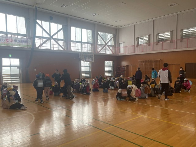 1月29日(木)、天気予報どおりの空模様です。今日も集団下校です。5限下校する1から3年生は、一足先に下校です。体育館の横で6限の活動のため待機していた5年生は、集団下校するグループ一つ一つに「さようなら」と声をかけていました。ほほえましい光景でした。