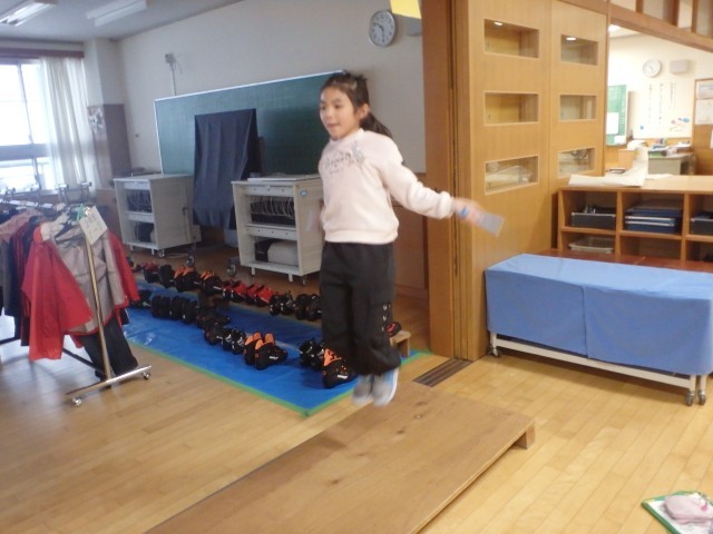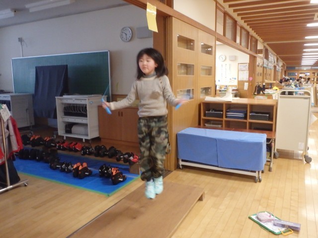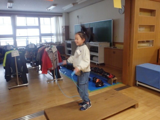 冬期間、外で遊んだり活動したりする機会が制限される中、屋内で縄跳びをすることは、体力作りにもってこいです。上手ですね!