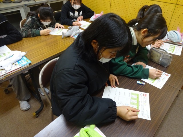 2月16日(月)、6年生が別室でプリントに取り組んでいます。「ねえ、教えて」と隣の子に尋ねている子もいました。「いいね。分からないところはどんどん聞いた方がいいよ」集中して取り組んでいます。