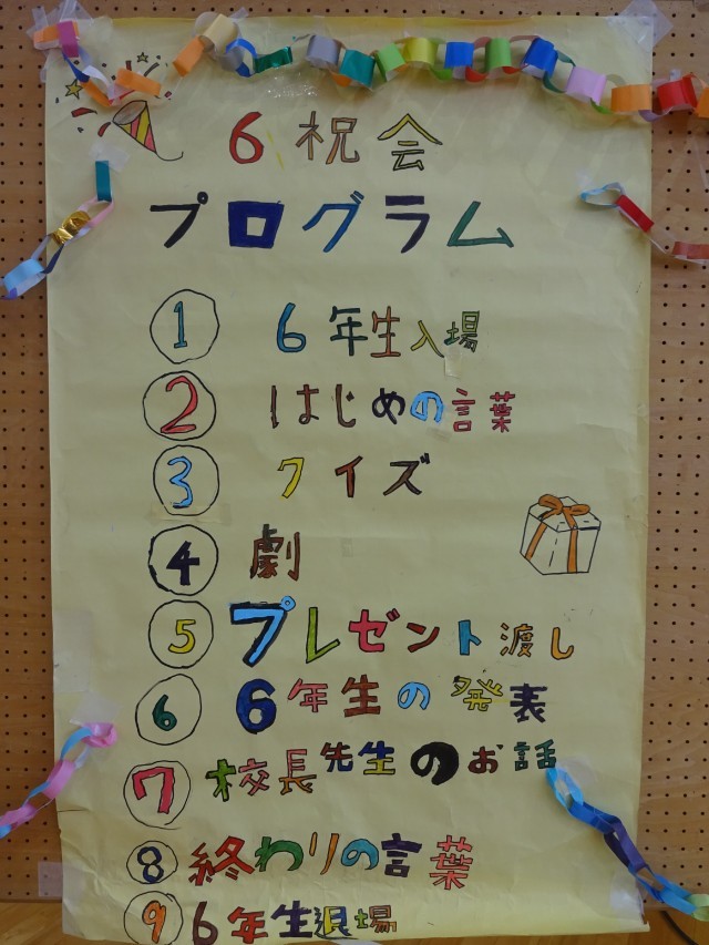 そして、3月5日(木)、6祝会当日。5年生のみなさんの運営、とてもよかったですよ!来年度の十日町小学校をお願いしますね!!