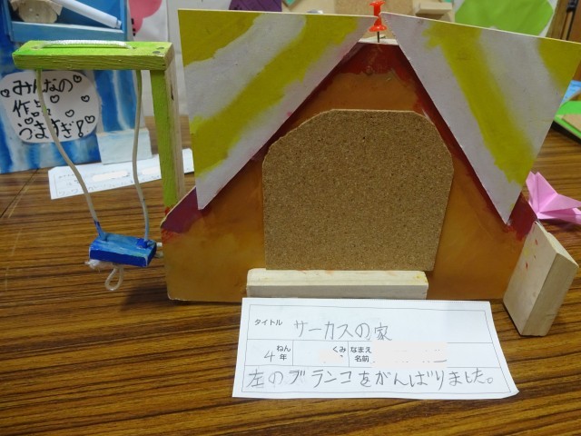 これはもう伝言板の域を超えています!芸術品ですね。こだわったブランコが堂々と飾られています。後ろに展示されている子のホワイトボードに書かれている「みんなの作品うますぎ」がこの集団の人間的あたたかさを象徴しています。