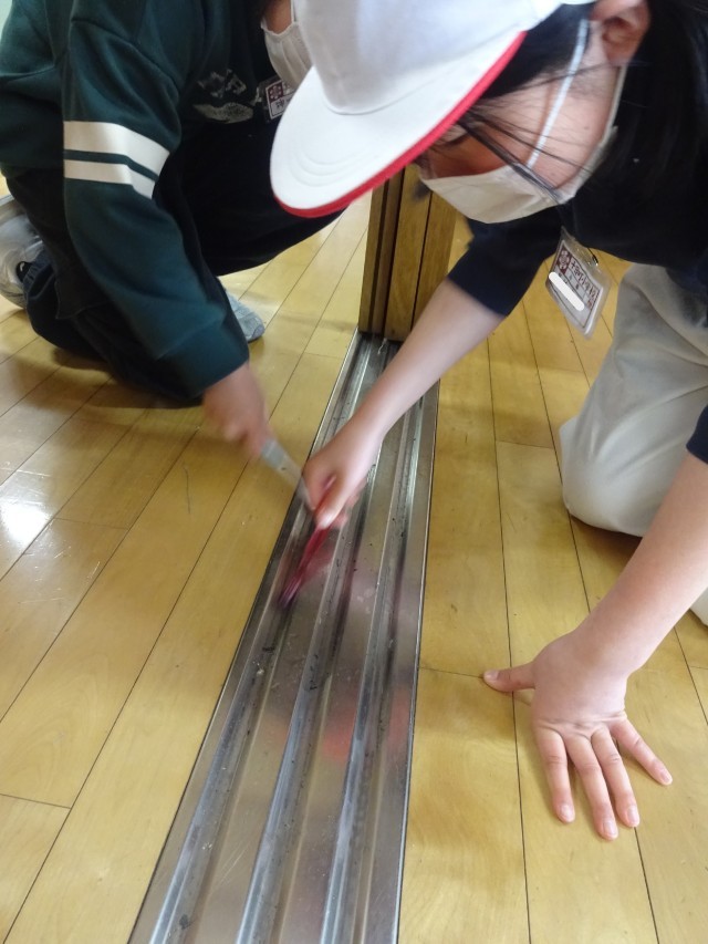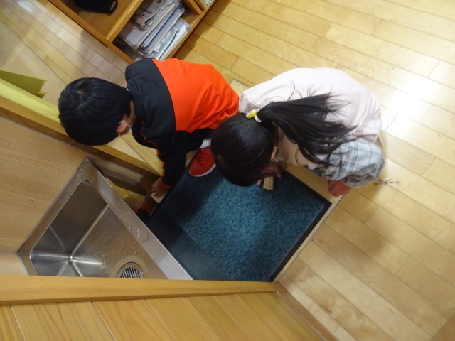 3月18日(水)、大掃除の日です。本当は、計画的に実施する予定だったのですが、インフルエンザの流行により、感染拡大を懸念し控えていました。本日は最初で最後の大掃除です。カメラを持ちながら掃除の様子を見ていると、自分で考えながら掃除しています。普段は手が入らないようなところを念入りに。「校長先生、見て。ここはね、ティッシュを折りたたんで、こうやって拭くと汚れが落ちるんだよ」考えているからこそ、自分の言葉で話すことができます。