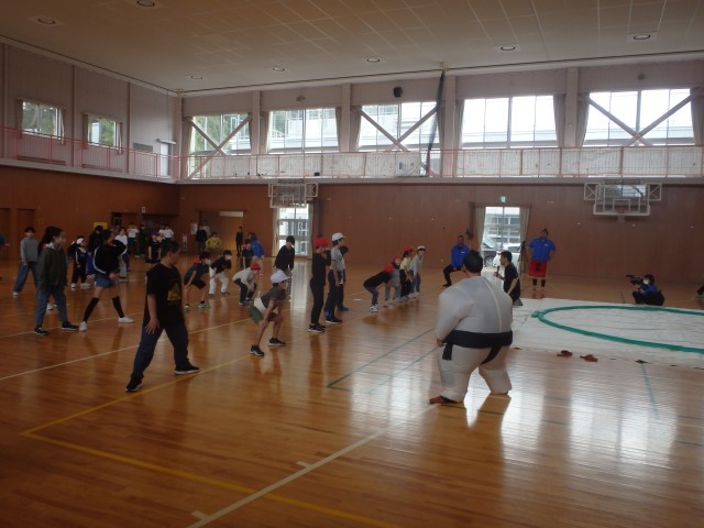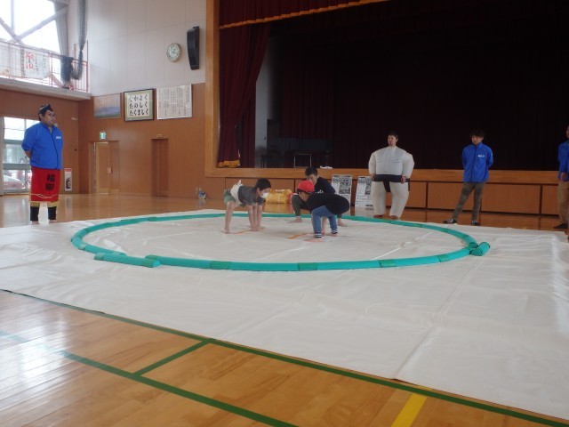 4月22日(水)昼休みの体育館。臨時の土俵が用意され、こどもが相撲にチャレンジです。5月に開催される「わんぱく相撲越後妻有場所」に多くのこどもから出場してほしいと、十日町青年会議所の皆様が相撲教室を開催しました。何でもチャレンジする子は、自分の心の引き出しにたくさんの思い出と充実感を保管しています。