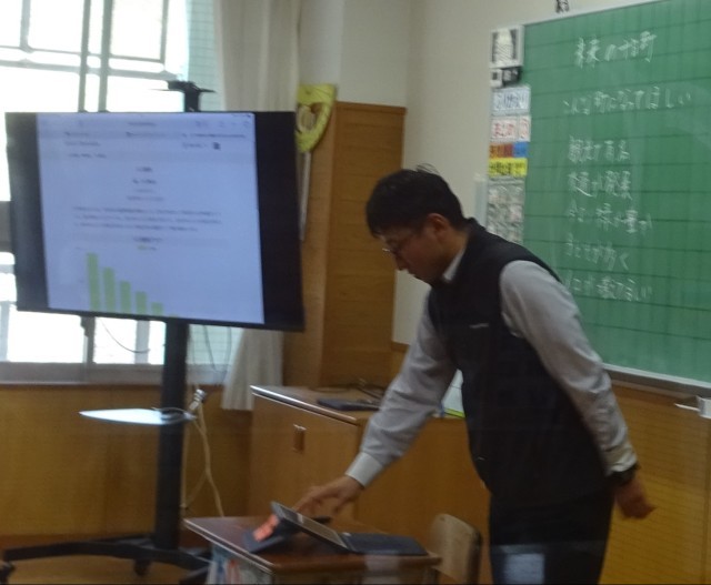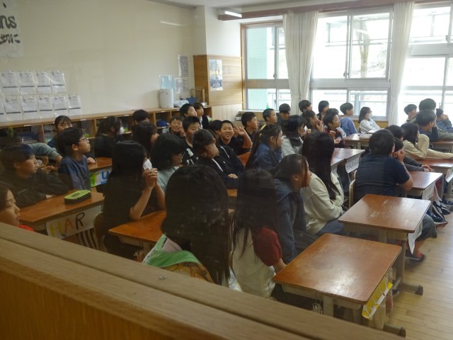 4月24日(金)、6年生が合同で何やら学級担任からの話を聞いていました。作戦会議的な雰囲気が漂っていたので、教室の中に入ることをためらい、廊下から写真を撮りました。しかし・・・、一人「ピース!」とこちらに笑顔を向けピースサイン(笑)。