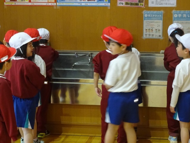 4月27日(月)3限の体育館。1年生がきちんと整列して並んでいました。しばらくすると、「これから水飲みタイムです。飲みたい人はどうぞ」という声が聞こえ、1年生が体育館出入口付近にある水飲み場に走ってきました。ここでも順番を乱すことなく並んでいました。そして、「こっちが空いてるよ」と並んでいる人に声をかけている場面に出会いました。さりげない一言ですが、相手の存在をしっかりと認識しているからこそ発する言葉です。私には、素晴らしい言葉に聞こえました。