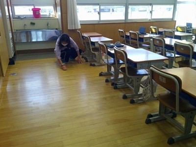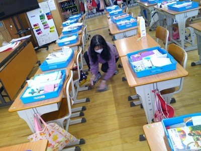 先生方が、子どもたちにきれいな教室で気持ちよく過ごしてもらおうと力を込めて床磨きをしたり、より過ごしやすい教室にしようと、机やマット、本のラックを設置したりしています。管理員さんはエアコンのフィルターをきれいにしてくださっています。子どもたちのために授業の準備を進める担任の先生方をはじめ、学校のいたる所で一生懸命に環境を整えてくださる方々に感謝します。