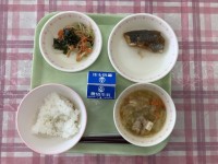コシヒカリごはん牛乳さわらの梅おかか揚げ青菜の辛子ごま和え塩麹でうま味マシマシス...