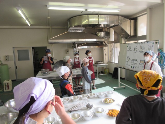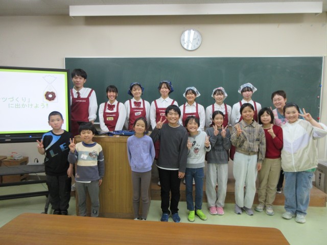 今年度野菜作りを中心に交流している十日町総合高校の生徒さんと一緒に焼きドーナツ作りに挑戦しました。これは飛渡第一小学校の畑で育てたサツマイモとカボチャ、飛渡米(米粉)を使った飛渡にこだわった焼きドーナツです。今回は、普段野菜作りでお世話になっている野菜班の4名の高校生のほかに、食品加工班の3名も加わり一緒に活動しました。調理指導はもちろん食品加工班のみなさんです。思った以上においしいドーナツで児童は大喜びでした。今回のドーナツを11月7日(金)に開催される「全国へき地教育研究大会」の特設テントで高校生が販売する予定します。活動の詳細は十日町総合高校のインスタグラムでも紹介されていますので、ぜひそちらもご覧ください。