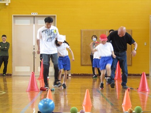 「あきらめないで走りぬく みんなの姿で地域を笑顔に」のスローガンのもと、運動会を行いました。雨模様だったため体育館での開催となりましたが、間近で競技を見ていただくことができました。徒競走、玉入れ、親子レースの模様です。