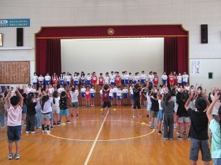 昼に親善陸上大会の激励会を行いました。4年生児童代表の激励の言葉に続き、5・6年生の選手紹介がありました。その後、4年生応援団が掛け声をかけ、1~4年生全員で気持ちのこもった激励応援をしました。そして、6年生代表が当日の健闘を誓う決意の言葉を発表しました。25日(木)の当日には、1~4年生のエールを背に自己ベストを目指して、チーム川治で一人一人が全力を尽くしてほしいと思います。