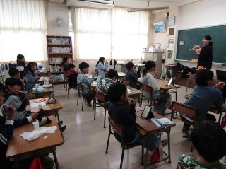 歯科衛生士さんからご来校いただき、2日間にわたり、1・3・5年生に歯科指導をしていただきました。口の中を清潔にしておかないとどうなるかについて、映像を用いて具体的に話していただき、子どもたちも自分事として真剣に聞いていました。その後、ブラッシングについて丁寧に教えていただきました。「身体の健康は口の中から」とも言われます。今回学んだことを忘れず、食後の歯磨きを大事にして健康的な生活を送ってほしいと思います。