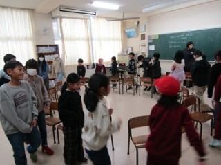 昼休み後の各種集会の時間に、やまびこ班(縦割り班)遊びを行いました。30班あるやまびこ班を3班ずつのグループにして各教室で遊びました。6年生が、みんなが楽しめる遊びの内容を考え、進行をしました。「椅子取りゲーム」「ばくだんゲーム」「だるまさんが転んだ」「宝物探し」などの遊びを通して、やまびこ班のメンバーで楽しい時間を過ごすことができました。6年生がリーダーとしての役割を果たす中で、笑顔が広がり、絆が深まりました。