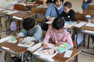 4/15 1-2 図工 にこにこしたかおをかこう