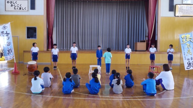 5・6年生が出場する親善陸上大会に向けて、4年生が激励会を開いてくれました。
