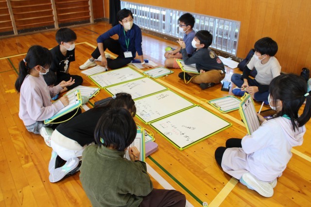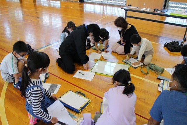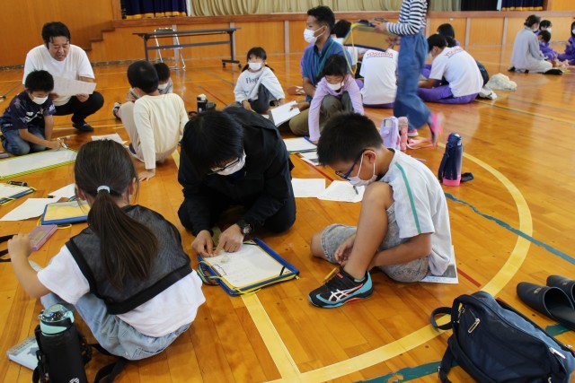 5・6年生は、中学生とグループになり、自分の考えた川柳を紹介し合ったり、一緒に新しい句を考えたりしました。