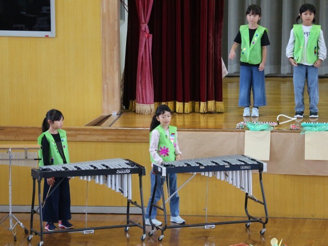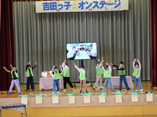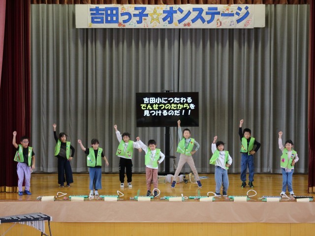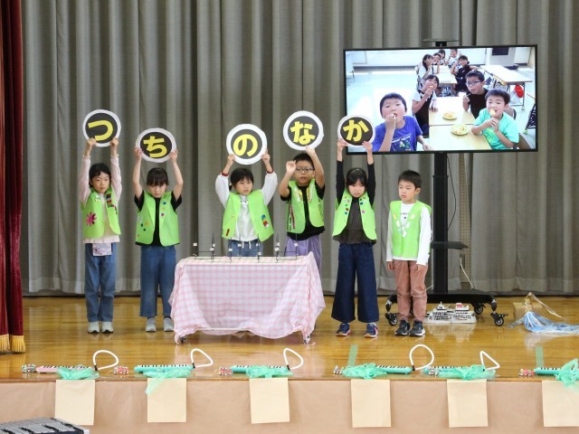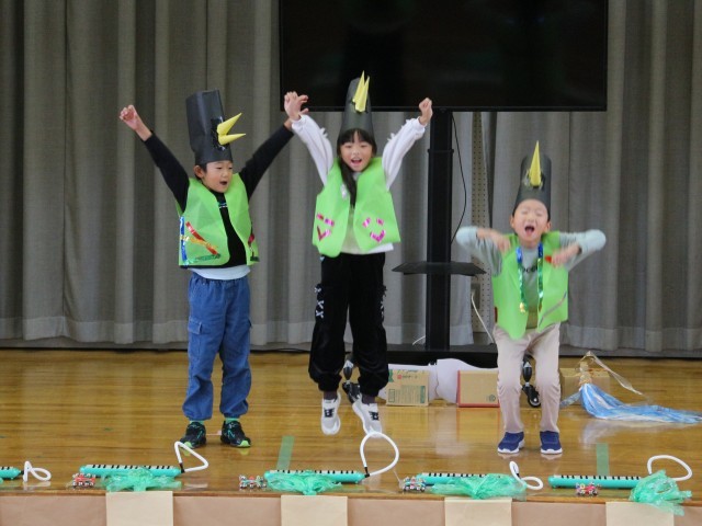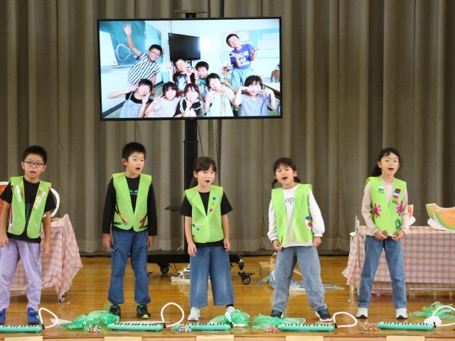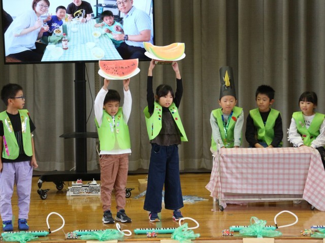 1・2年生の発表は「伝説の宝を探す9人のチャレンジ~みんなのやさいものがたり~」です。