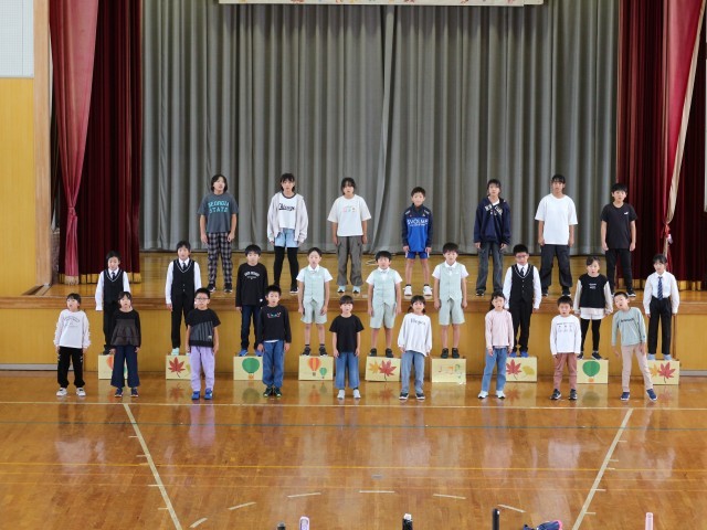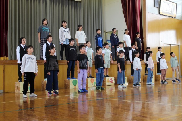 最後に、全校で「音楽のおくりもの」と「もみじ」の合唱をしました。