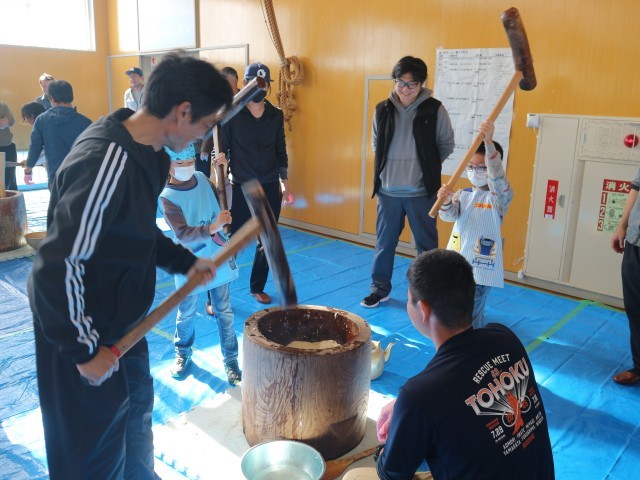 おかわり用に2回目のもちつきも行われ、小さい子どもたちもたくさんついてくれました。