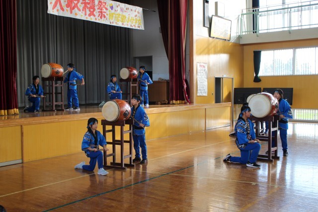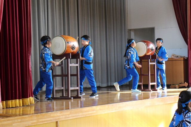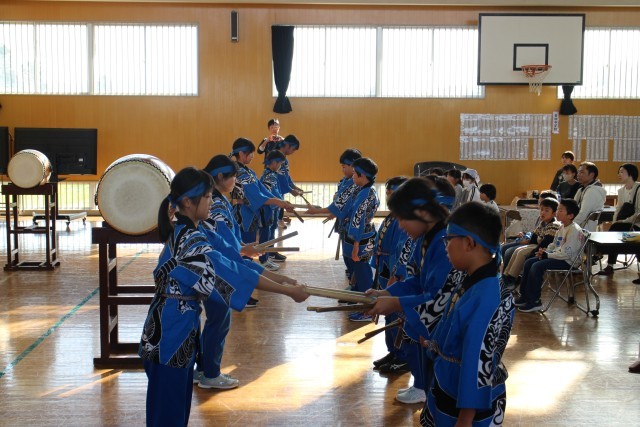 先輩から後輩へ代々受け継がれてきた吉田小伝統の「さんとこ・あすなろ太鼓」。