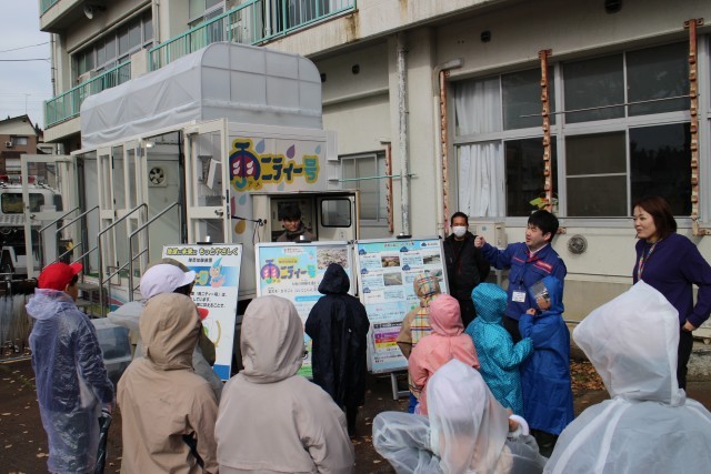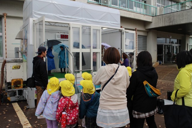 降雨体験は、最大180mmの雨を体験しました。想像していたよりも弱く感じた子が多かったようですが、降り続くと災害になることを実感しました。