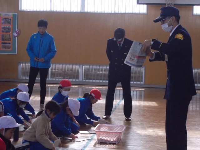 最後に、新聞紙を使って災害時に役立つスリッパづくりを教えていただきました。