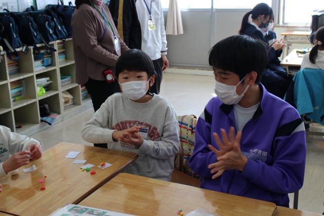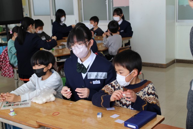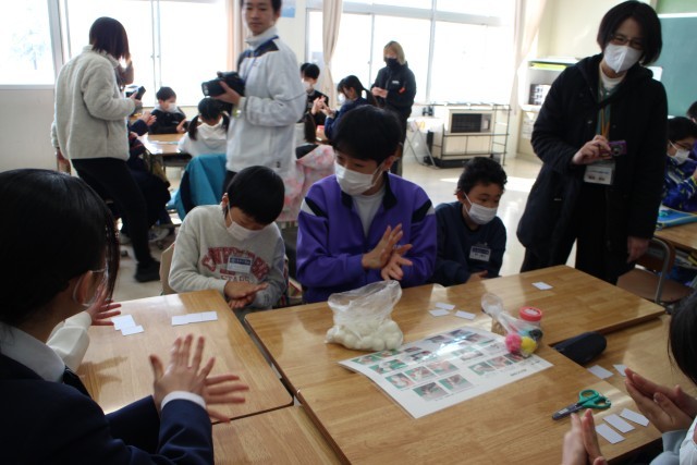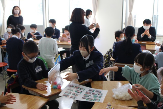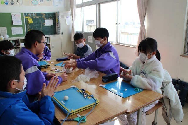 吉田小・鐙島小・吉田中の3校合同で、ちんころ作りを行いました。