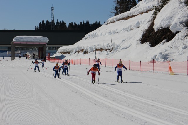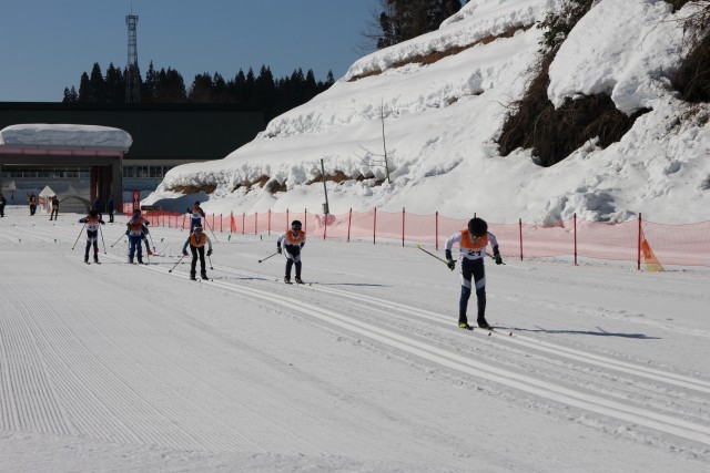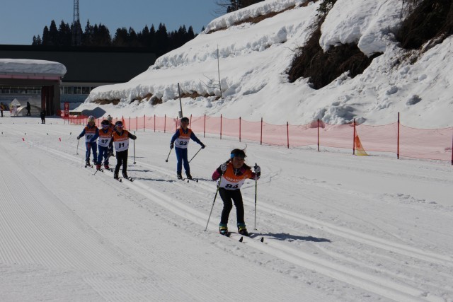 吉田地区民スキー大会が、22日、快晴の吉田クロスカントリースキー競技場で行われました。